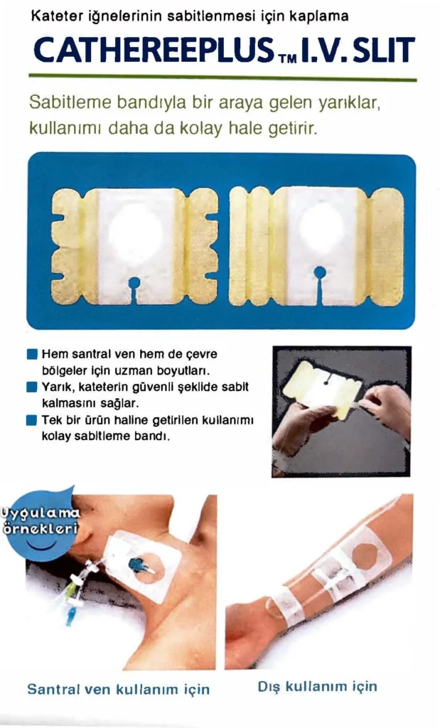 Dokuma olmayan bez, taşıyıcı bir film olmadan elmas şeklinde bir pencere kullanarak kateter iğnelerini güvenli bir şekilde sabit tutar.