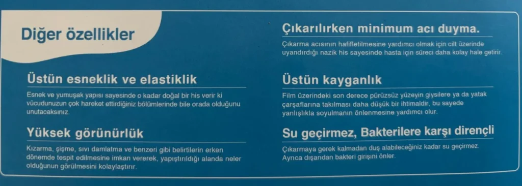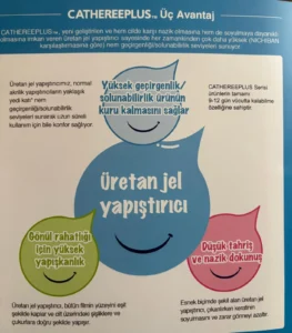 Yeni doğan bebekler için kateter sabitlemeden, yaraların korunmasına kadar her türlü kullanıma uygun, çok çeşitli boyutlarda bir seri.